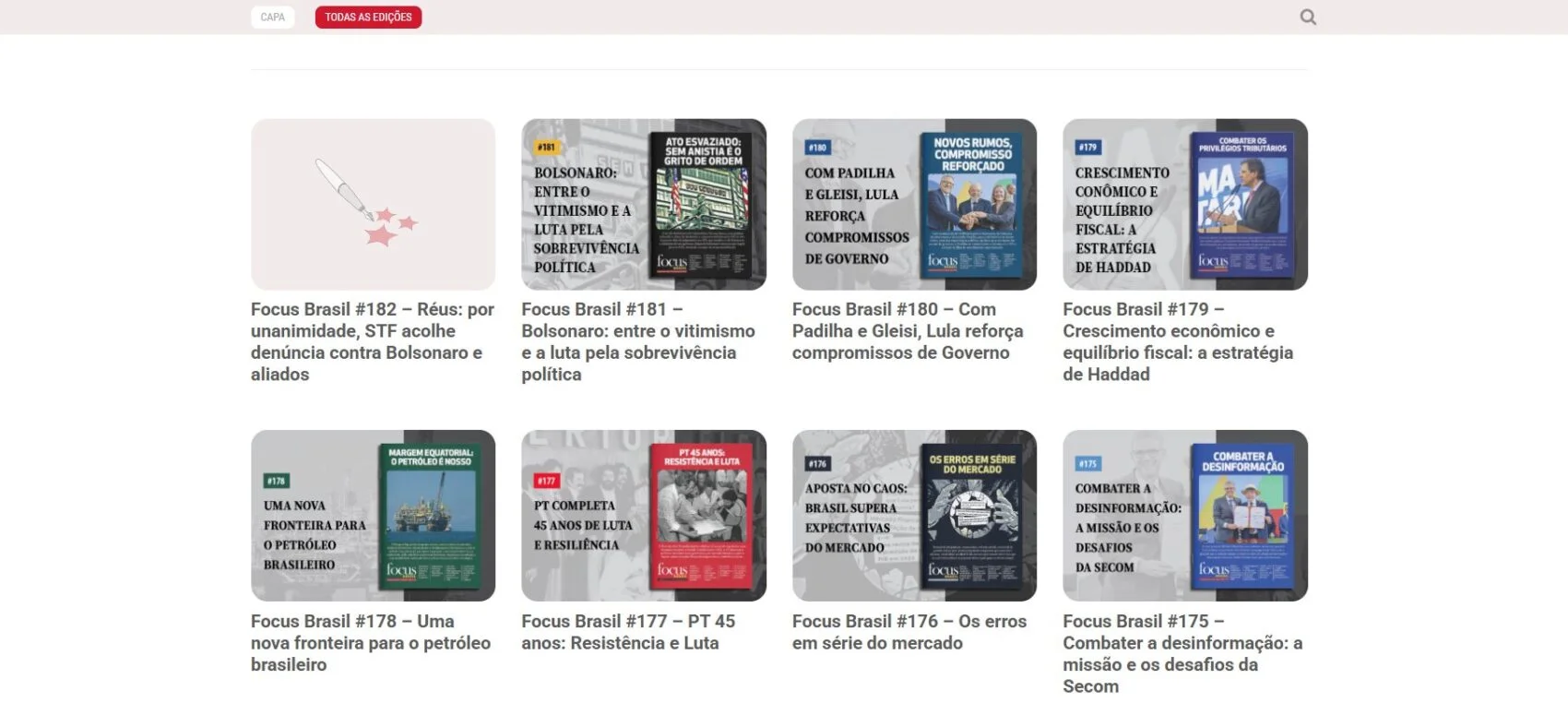 A Revista Focus Brasil é uma publicação da Fundação Perseu Abramo que promove análises críticas, debates e entrevistas sobre política, economia e sociedade, destacando os desafios da democracia e as lutas sociais no Brasil.